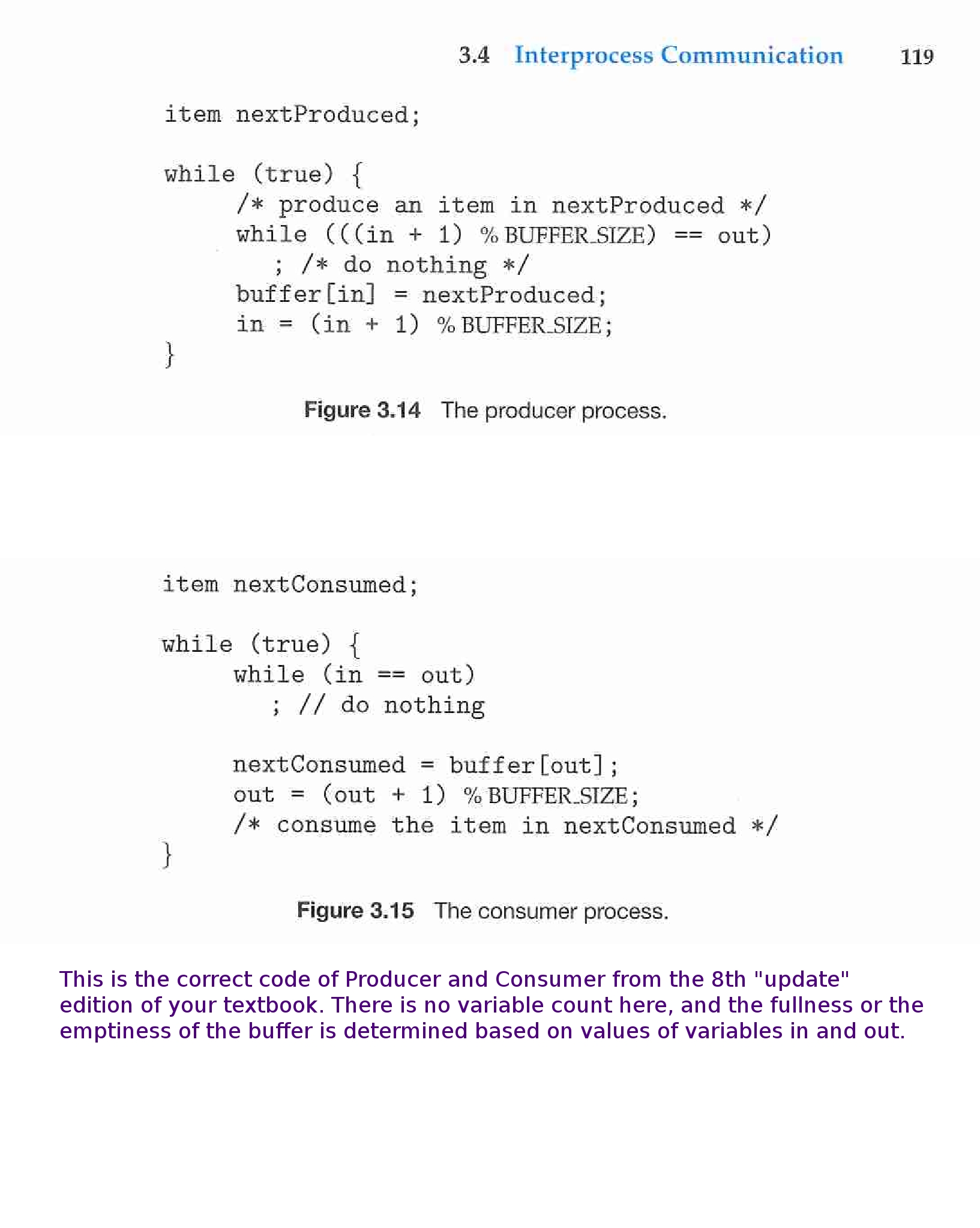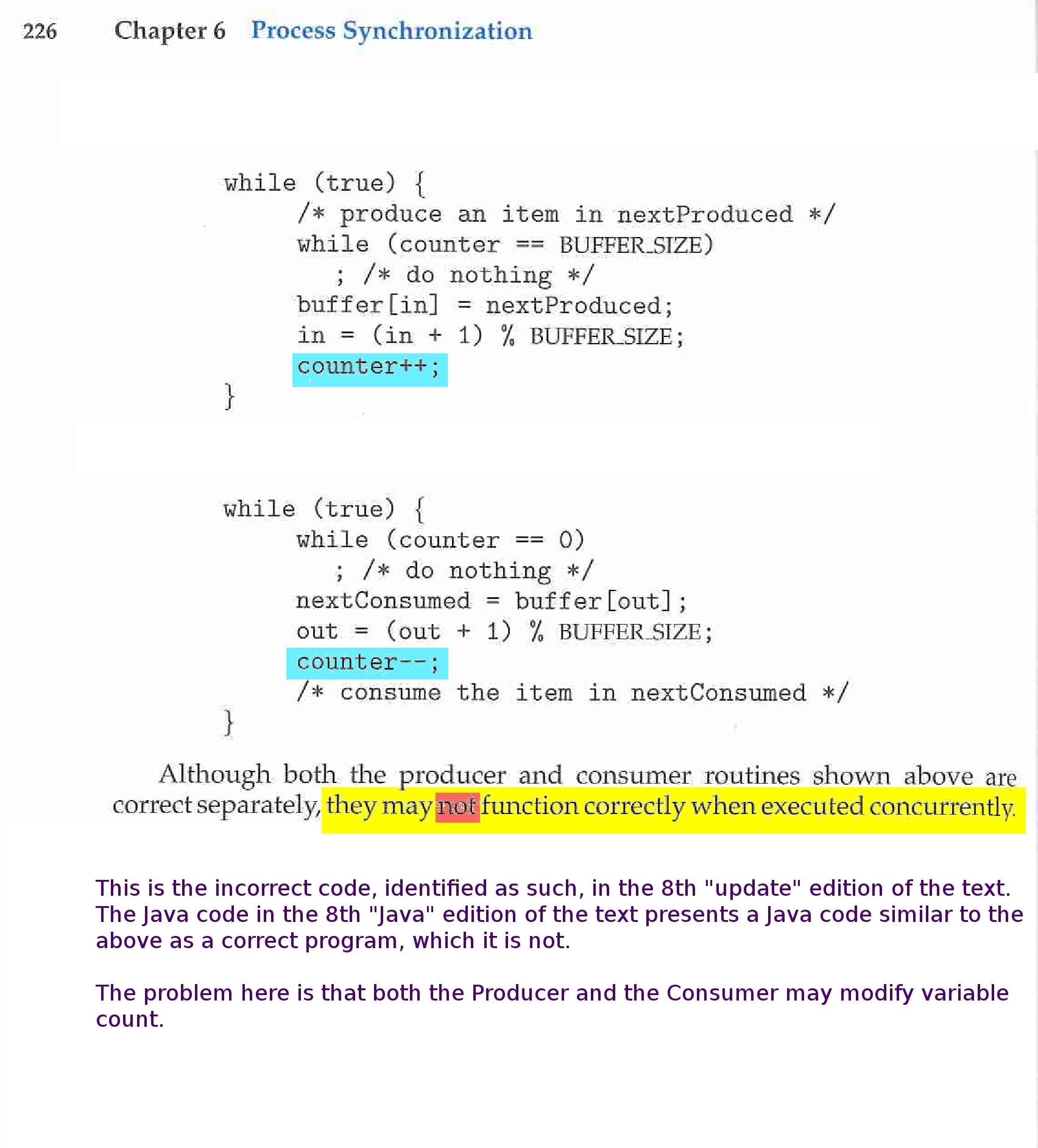 The following are comments regarding incorrect versions of Producer and Consumer code in previous editions and versions of the text. They are optional for all students.